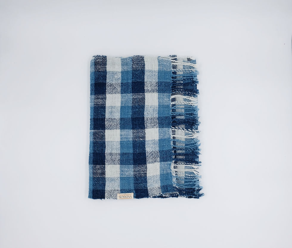 NUNNTAA selects natural indigo dyed fabric crafted from materials cultivated within local communities in Thailand to create womenswear and keeps the balance between the design and values that the brand stands for: doing better for the environment and supporting local communities.